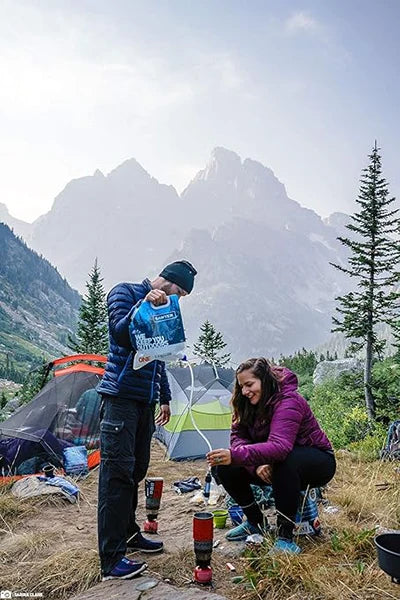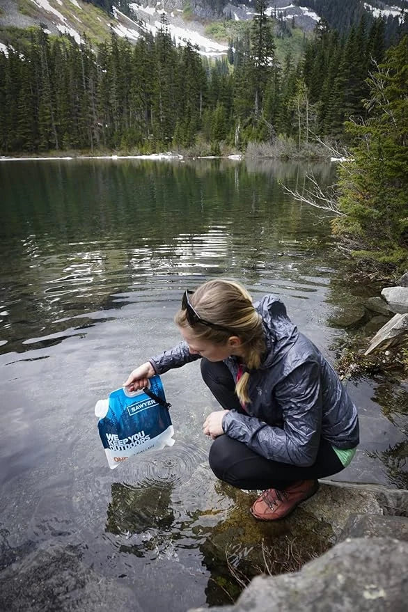 A lightweight, robust solution for transporting large quantities of water, Sawyer's Water Reservoir (in 1- and 2- gallon capacities) is compatible with the Sawyer PointOne Squeeze Filter and MINI water filtration systems (not included). Ideal for backpacking, backcountry camping, and emergency preparedness, the bladder features a wide mouth cap that allows for fast and easy filling and a convenient carry handle. It rolls up for easy packing and doesn't add much weight to your bag (3.75 ounces for 1-gallon and 4.5 ounces for 2-gallon). It's easy to set up a gravity based filtering system with the Water Reservoir and either the PointOne Squeeze Filter or MINI water filter. First fill the reservoir with water from any source — a lake, stream, faucet, etc. — and then hang the bag with the MINI connected below it (via the included hose) to let gravity do its work. Water will flow through your water filter to produce fresh, clean water for drinking and cooking.